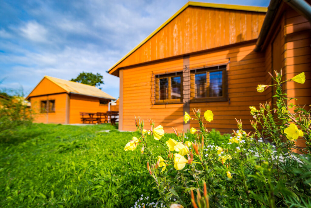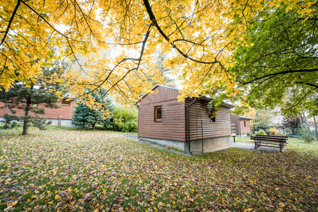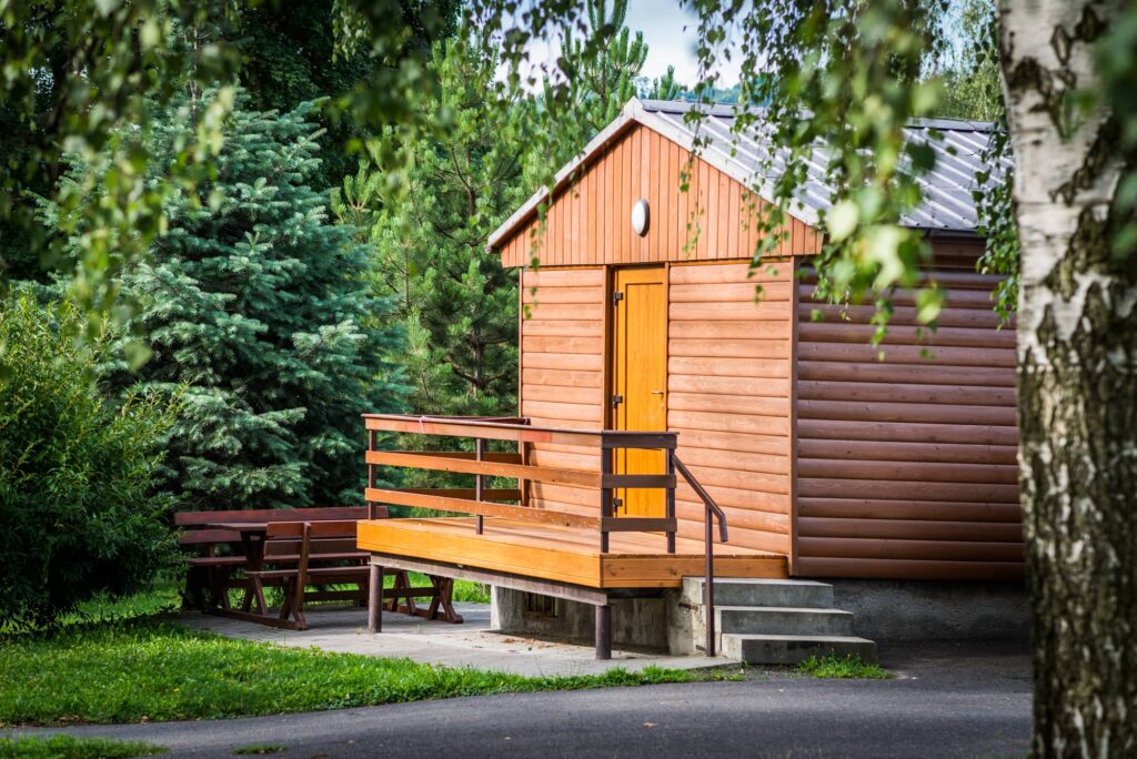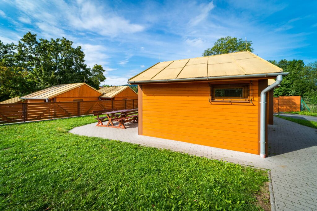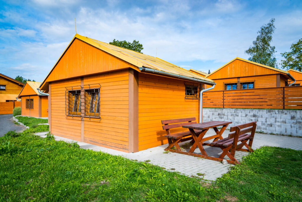 Dvoulůžkové chatky jsou zařízeny dvěma samostatnými lůžky, včetně lůžkovin a povlečení (obdržíte při příjezdu na recepci). Součástí chatky je vlastní kuchyňský kout a sociální zařízení (wc, sprcha, umyvadlo). V kuchyňce naleznete varnou konvici, dvouplotýnkovou varnou desku, malou lednici, nádobí (sklenice, hrnky, talíře, příbory, misky, hrnce) a utěrku. Šatní skříň je nedílnou součástí. U každé chatky je vlastní dřevěné posezení ať už pro pohodu u kávy či večerní grilování (gril lze zapůjčit v omezené kapacitě, vlastní je výhodou). Dále doporučujeme dovést si vlastní ručníky, hygienické potřeby a toaletní papír. V bezprostřední blízkosti se nachází restaurace a kavárna. Hypermarket je vzdáleny cca 2 km. Parkování je možno při vjezdu do objektu u budovy Recepce.