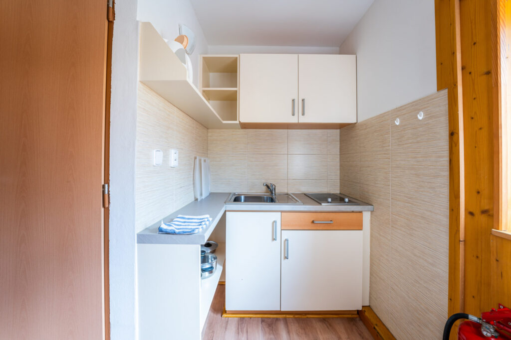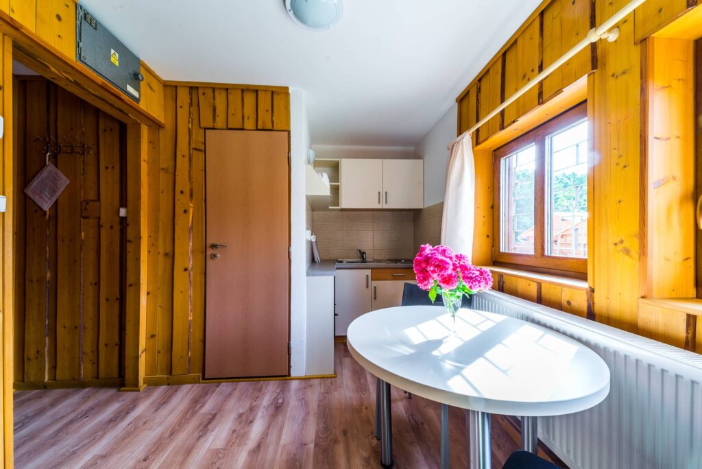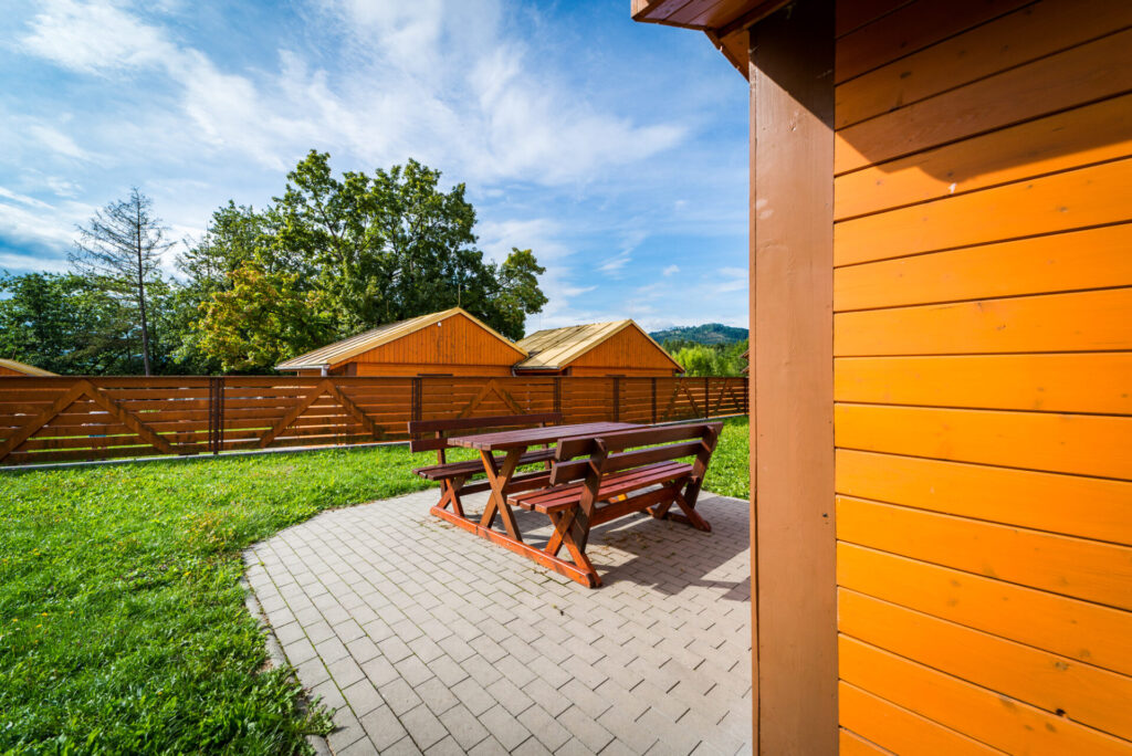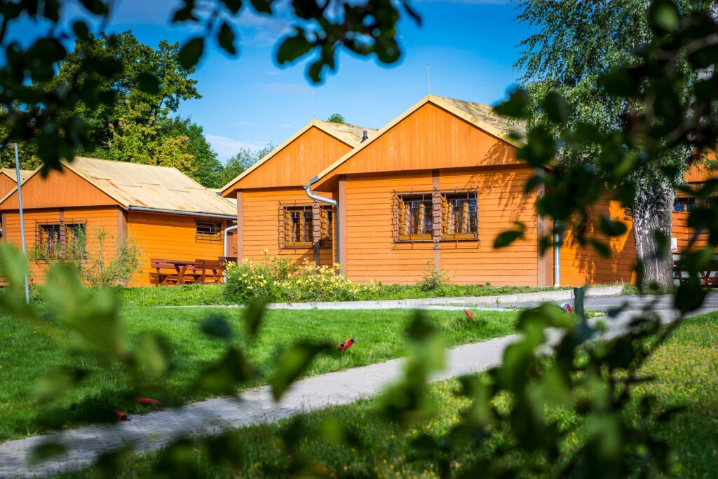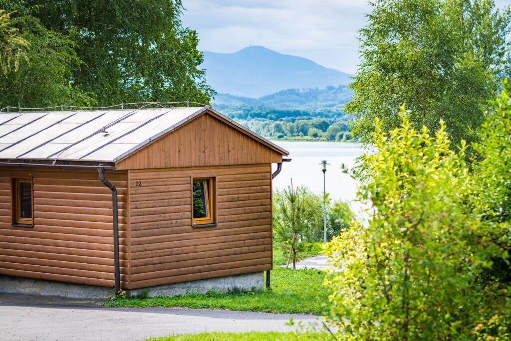 Dvoulůžkové chatky jsou zařízeny dvěma samostatnými lůžky, včetně lůžkovin a povlečení (obdržíte při příjezdu na recepci). Součástí chatky je vlastní kuchyňský kout a sociální zařízení (wc, sprcha, umyvadlo). V kuchyňce naleznete varnou konvici, dvouplotýnkovou varnou desku, malou lednici, nádobí (sklenice, hrnky, talíře, příbory, misky, hrnce) a utěrku. Šatní skříň je nedílnou součástí. U každé chatky je vlastní dřevěné posezení ať už pro pohodu u kávy či večerní grilování (gril lze zapůjčit v omezené kapacitě, vlastní je výhodou). Dále doporučujeme dovést si vlastní ručníky, hygienické potřeby a toaletní papír. V bezprostřední blízkosti se nachází restaurace a kavárna. Hypermarket je vzdáleny cca 2 km. Parkování je možno při vjezdu do objektu u budovy Recepce.