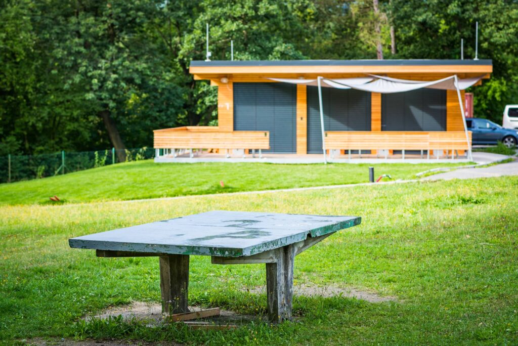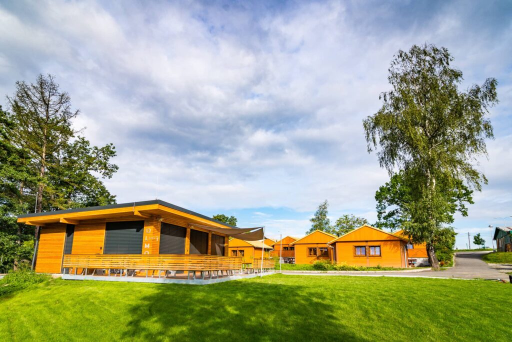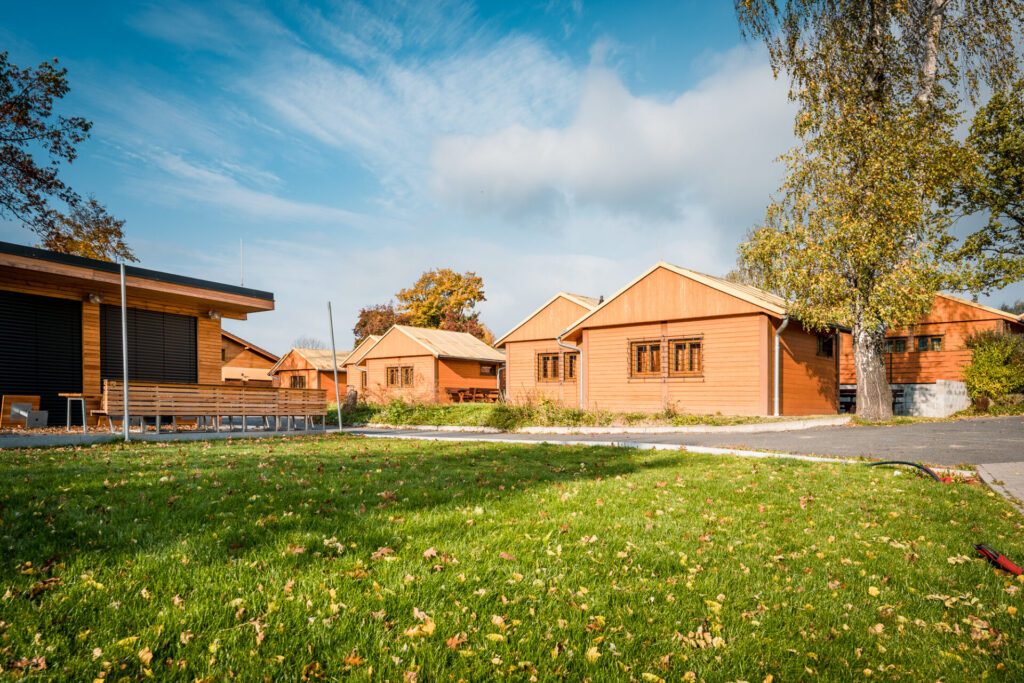 Třílůžkové chatky jsou zařízeny třemi samostatnými lůžky, včetně lůžkovin a povlečení (obdržíte při příjezdu na recepci). Součástí chatky je vlastní kuchyňský kout a sociální zařízení (wc, sprcha, umyvadlo). V kuchyňce naleznete varnou konvici, dvouplotýnkovou varnou desku, malou lednici, nádobí (sklenice, hrnky, talíře, příbory, misky, hrnce) a utěrku. Šatní skříň je nedílnou součástí. U každé chatky je vlastní dřevěné posezení ať už pro pohodu u kávy či večerní grilování (gril lze zapůjčit v omezené kapacitě, vlastní je výhodou). Dále doporučujeme dovést si vlastní ručníky, hygienické potřeby a toaletní papír. V bezprostřední blízkosti se nachází restaurace a kavárna. Hypermarket je vzdáleny cca 2 km. Parkování je možno při vjezdu do objektu u budovy Recepce.